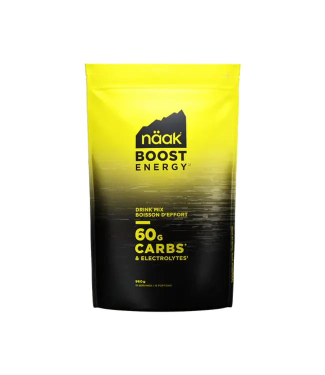 Näak Boost Energy™ Drink Mix, the high-carb sustainable fuel. Designed for intense efforts, each serving delivers 60g of carbohydrates to help you push your limits, and 400mg of electrolytes to replenish minerals lost in sweat. Read more.